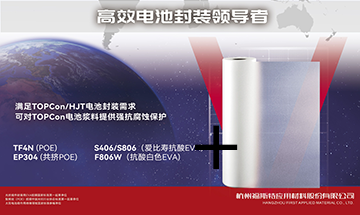 福斯特TF4N POE突破TOPCon單玻封裝難點,CF連接膜助力HJT/TOPCon實現(xiàn)0BB! [2023-11-06]2023年金秋,19th CSPV會議在西安如期召開。作為全球領(lǐng)先的封裝材料供應(yīng)商,福斯特針對當(dāng)下先進(jìn)電池組件的封裝挑戰(zhàn),給出了全面的解決方案。[查看詳情]