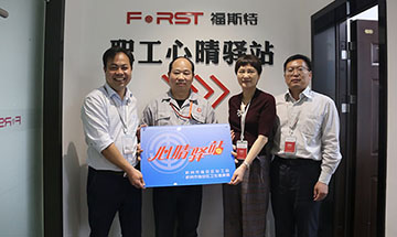 給心靈安家:福斯特“心晴驛站”授牌成立 [2020-10-15][2020-10-15]為切實保障職工心理健康,促進企業(yè)對職工的關(guān)懷,在臨安區(qū)總工會和衛(wèi)健局的合力打造下,臨安區(qū)首個“心晴驛站”在福斯特授牌成立。10月10日下午,區(qū)總工會副主席盛勤華,區(qū)衛(wèi)健局副局長陸旭軍,錦北街道人大工委主任傅賢軍一行蒞臨福斯特,參加授牌儀式,交流職工心理健康建設(shè)相關(guān)經(jīng)驗。[查看詳情]