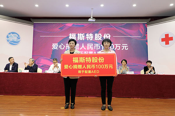 心臟驟停是威脅人類健康的重要?dú)⑹?。隨著人口老齡化和冠心病等患病人數(shù)增多,心臟驟停的發(fā)病率日漸增高。我國(guó)每年心臟性猝死發(fā)病人數(shù)超過(guò)55萬(wàn),相當(dāng)于每分鐘就有1人發(fā)生心臟驟停。為助力臨安區(qū)公眾急救體系的建設(shè),福斯特向臨安區(qū)紅十字會(huì)捐款100萬(wàn)元,用于臨安區(qū)公共場(chǎng)所急救設(shè)備AED(自動(dòng)體外除顫儀)的配置,全力守護(hù)市民的生命安全,福斯特榮獲杭州市紅十字會(huì)“人道博愛(ài)奉獻(xiàn)獎(jiǎng)”!