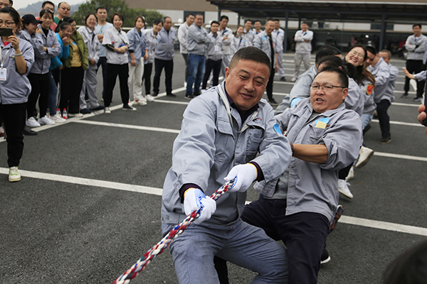 隨后,開始趣味集體項目的比賽,由奮勇向前接力、多人握桿走“8”字以及拔河三個單項組成,既考驗了團隊協(xié)作能力,又是團隊力量的大比拼。賽場上,大家熱情飽滿、斗志高昂,各個項目競爭激烈、精彩紛呈,充分展現(xiàn)了福斯特員工拼搏向上的良好風貌,增進了各個工會小組之間的交流,賽出了風格、賽出了水平、賽出了友誼!
