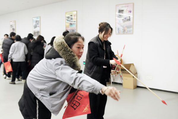 與此同時(shí),寫(xiě)福字、夾“湯圓”、投壺項(xiàng)目也在如火如荼地進(jìn)行?!皩?xiě)福字、沾福氣、納百?!?,祈愿福運(yùn)當(dāng)頭、萬(wàn)事順?biāo)欤煌秹刈鳛橐豁?xiàng)傳統(tǒng)的娛樂(lè)活動(dòng),具有送祝福的寓意,體現(xiàn)了人們對(duì)美好生活的向往;夾“湯圓”則是在規(guī)定時(shí)間內(nèi)將“湯圓”夾入碗中,象征幸福團(tuán)圓。職工們體驗(yàn)完成四個(gè)項(xiàng)目,紛紛到禮品兌換處挑選自己心儀的小禮品,大家其樂(lè)融融、盡興而歸。