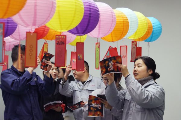 活動(dòng)現(xiàn)場(chǎng),喜慶的燈籠烘托出濃濃的節(jié)日氛圍,一條條趣味燈謎掛滿(mǎn)室內(nèi),既有通俗易懂的猜字謎,也有較為靈活的腦筋急轉(zhuǎn)彎。職工們仔細(xì)打量著謎面,邊思考解謎、邊互相討論,現(xiàn)場(chǎng)歡笑聲不斷。