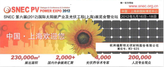 SNEC第六屆(2012)國際太陽能產業(yè)及光伏工程(上海)展覽會暨論壇