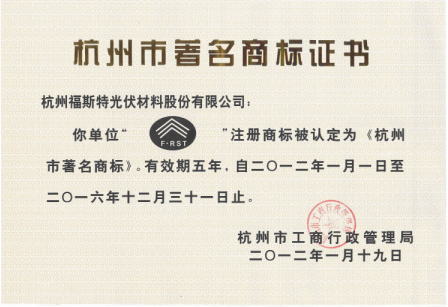 熱烈祝賀福斯特榮獲杭州市著名商標。