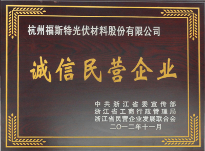 熱烈祝賀福斯特獲中共浙江省委宣傳部、浙江省工商行政管理局、浙江省民營企業(yè)發(fā)展聯(lián)合會授予“誠信民營企業(yè)”稱號。