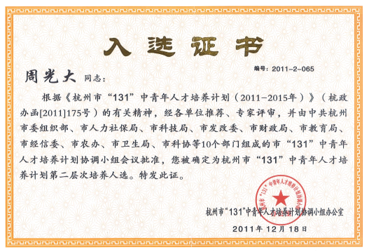 福斯特 技術(shù)總監(jiān)周光大博士入選杭州市“131”中青年人才培養(yǎng)計劃