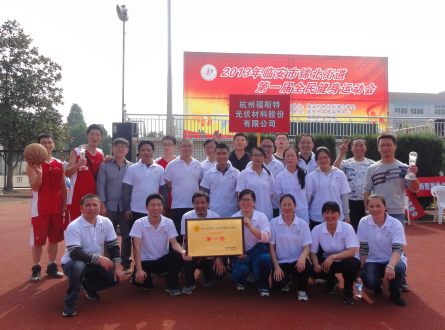 11月9日臨安市錦北街道第一屆全民健身運(yùn)動(dòng)會(huì)在錦城二中舉行。來(lái)自錦北街道各村委、企事業(yè)單位共20支隊(duì)伍參加了本次開(kāi)幕式和比賽項(xiàng)目。福斯特榮獲企業(yè)組團(tuán)體總分第一名,并勇奪拔河單項(xiàng)賽事一等獎(jiǎng)。