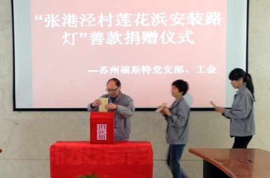 蘇州福斯特舉行“張港涇村蓮花浜安裝路燈” 善款捐贈(zèng)活動(dòng)
