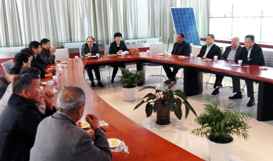 辛莊鎮(zhèn)勞模與公司領(lǐng)導(dǎo)在會議室進(jìn)行會談
