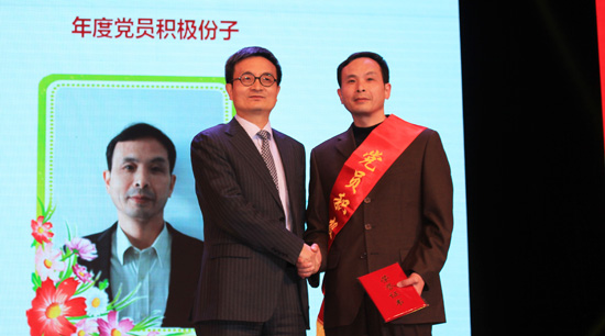 一個黨員,一面旗幟,一個黨員,一樹先鋒?!K固攸h員積極分子頒獎