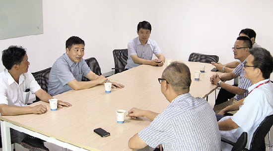 臨安市市長王敏一行與福斯特董事長林建華在會議室進行會談