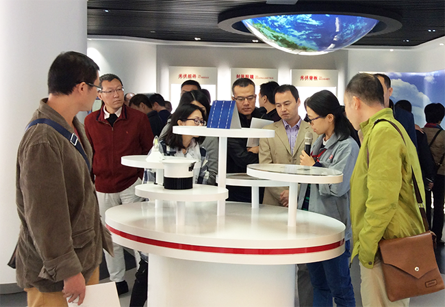 在研究院,考察團(tuán)聽取了公司相關(guān)負(fù)責(zé)人關(guān)于企業(yè)發(fā)展歷程、經(jīng)營業(yè)績、主營產(chǎn)品EVA膠膜和背板的介紹。同時,了解了企業(yè)在新材料領(lǐng)域的研究成果,近距離接觸、觀察企業(yè)產(chǎn)品。