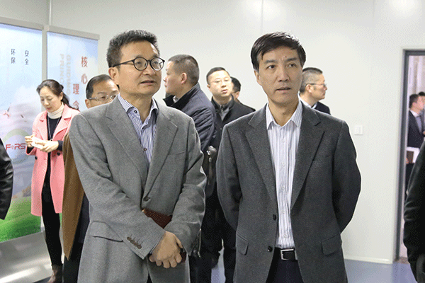 盧春強書記在林建華董事長的陪同下參觀企業(yè)生產(chǎn)車間