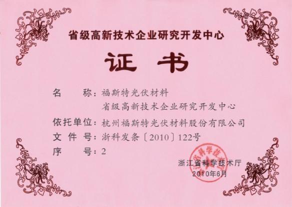 福斯特獲發(fā)省級高新技術(shù)企業(yè)研究開發(fā)中心證書