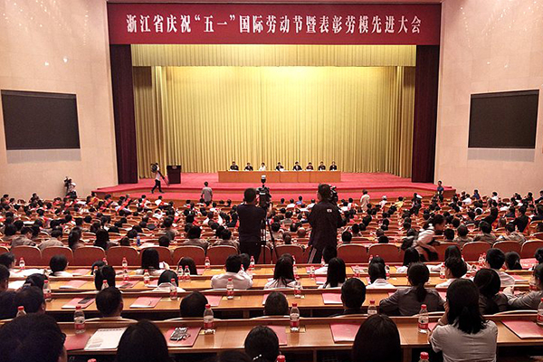 4月30日,浙江省慶?!拔逡弧眹?guó)際勞動(dòng)節(jié)暨表彰勞模先進(jìn)大會(huì)在省人民大會(huì)堂召開。福斯特陶菊明同志榮獲2019年浙江省勞動(dòng)模范并受邀參加表彰大會(huì)。