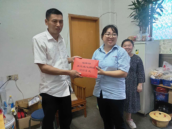 病魔無(wú)情,福斯特有愛(ài)。在得知情況后,公司發(fā)起了全員“愛(ài)心捐款倡議”。倡議一經(jīng)發(fā)出便立刻得到了積極相應(yīng),大家紛紛伸出援助之手幫助楊三華度過(guò)難關(guān)。沒(méi)有儀式,沒(méi)有渲染,卻有一股暖流在公司流淌。截止5月31日,已有1042名同事參與到本次愛(ài)心捐款行動(dòng)中,募集捐獻(xiàn)金額共計(jì)55518元。