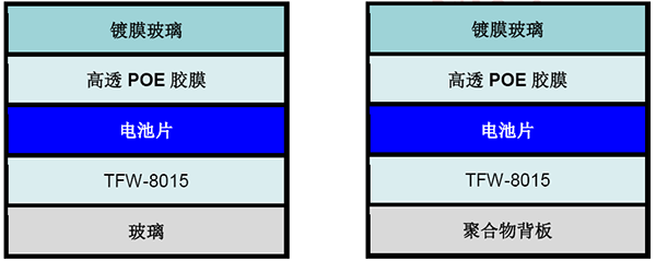 在雙玻組件中應(yīng)用的封裝結(jié)構(gòu) 在單玻組件中應(yīng)用的封裝結(jié)構(gòu)
